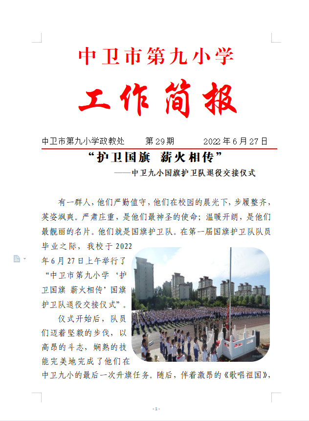 发布时间:2022-06-30 00:00 栏目:政教工作 发布单位:中卫九小 点击量:1714 【公开】
