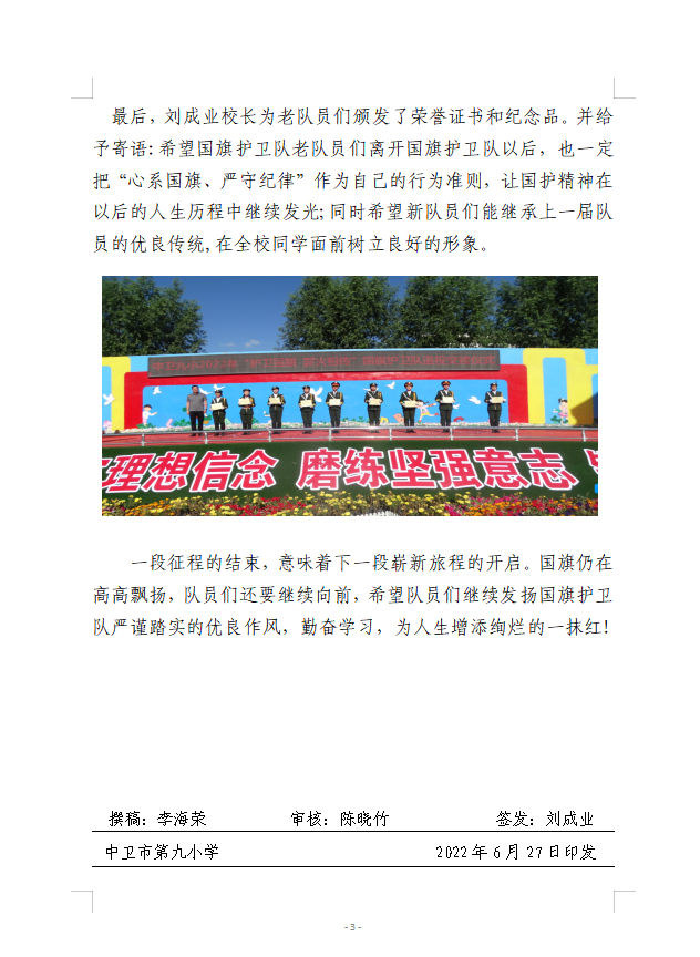 中卫九小国旗护卫队退役交接仪式
