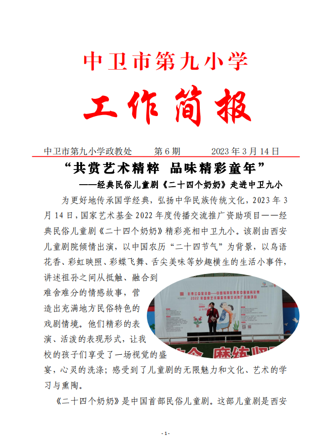 经典民俗儿童剧《二十四个奶奶》走进中卫九小