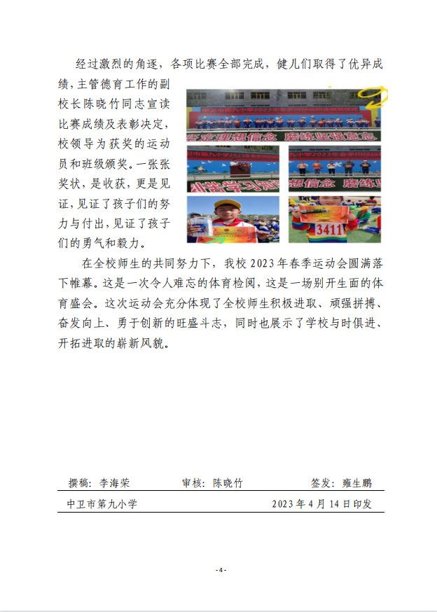 中卫市第九小学2023年春季田径运动会纪实