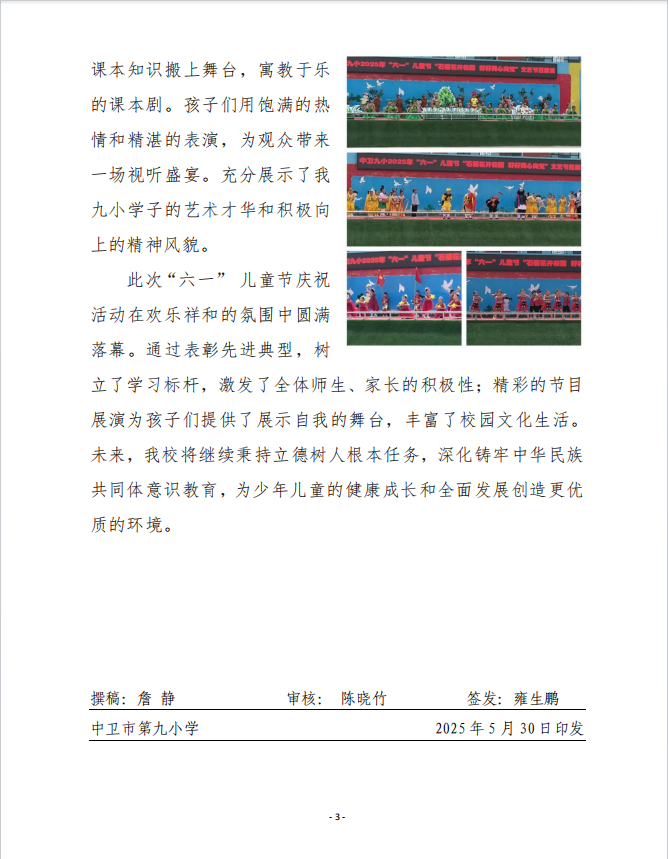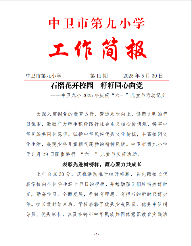 中卫九小2025年庆祝“六一”儿童节活动纪实