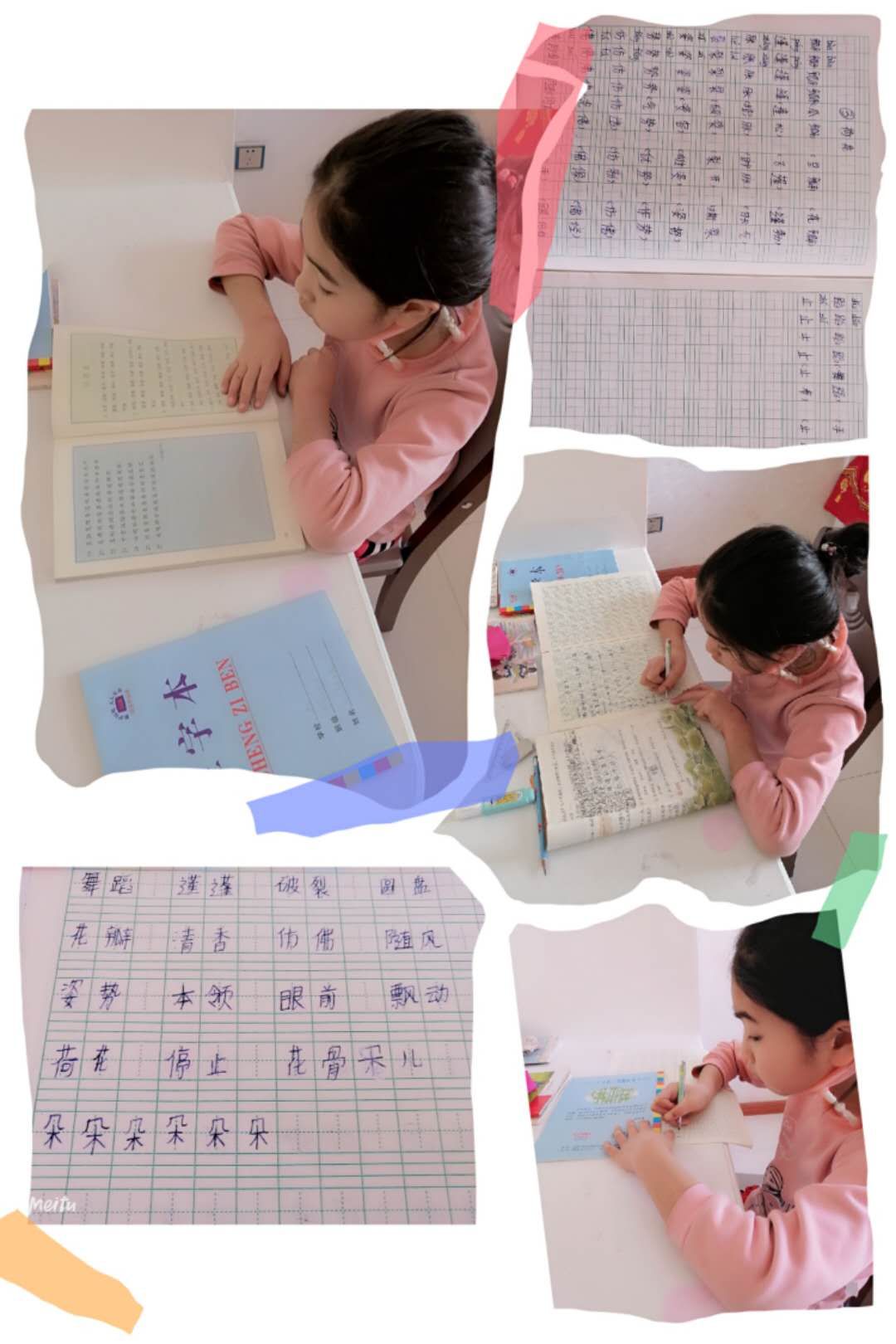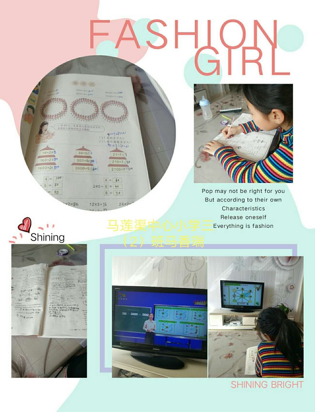 2020年2月17日,孩子们在电视机前参与了一场别开生面的升旗仪式,正式拉开了网上学习的序幕。视频中老师清脆悦耳的讲解、细致清晰的板书,随着初春的微风,落入孩子们耳朵里,映入他们明亮的眼帘中。瞧,孩子们看得多么入迷、多么仔细。崭新的课本上留下了他们认真的笔记,整洁的作业本上镌刻着他们对知识学习的反馈。