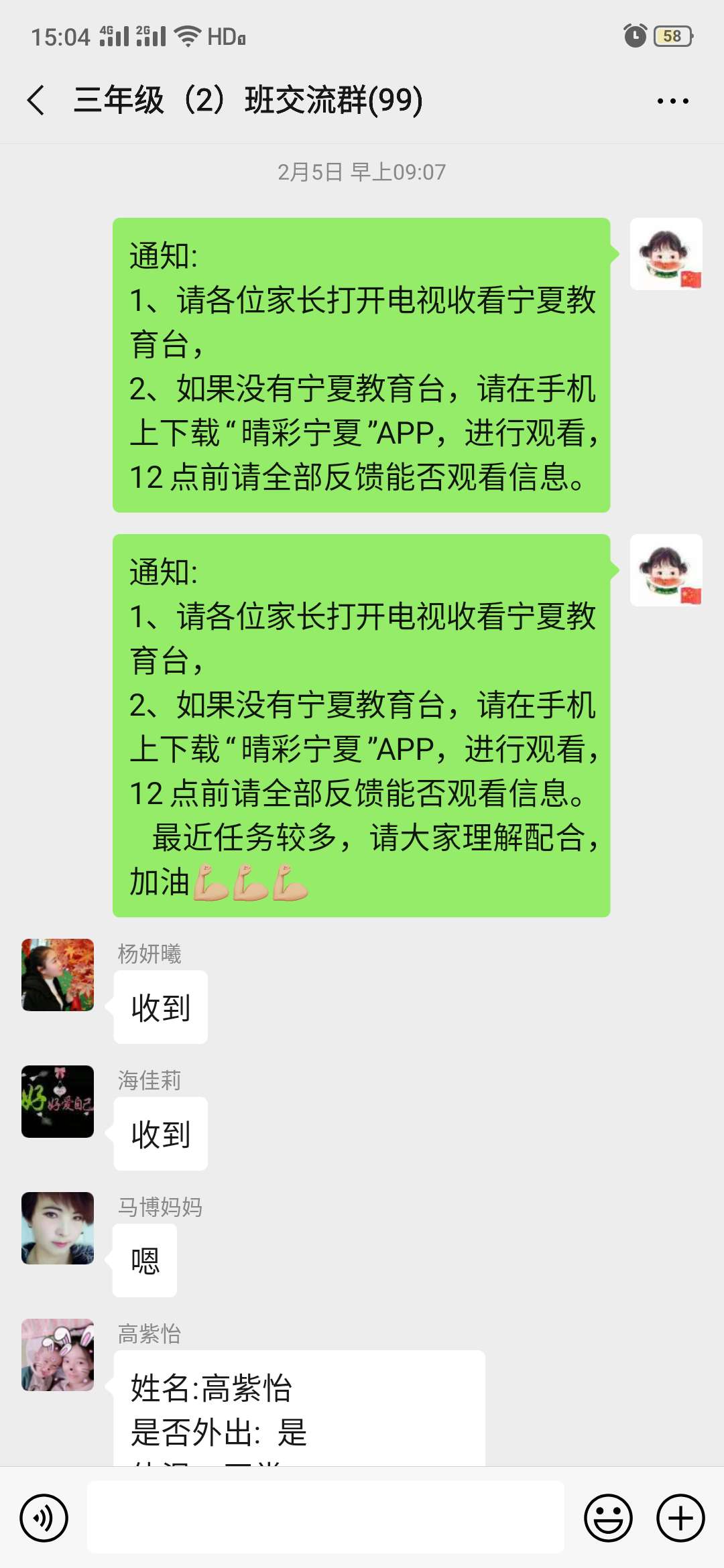 为了落实疫情期间“停课不停学,离校不离教”的要求,开课前一周,班主任便开始统计借助空中课堂、学习强国、宁夏教育等平台在线学习情况,并做到每日课堂追踪,保证每一名学生宅在家也能做到能学、在学、会学。
