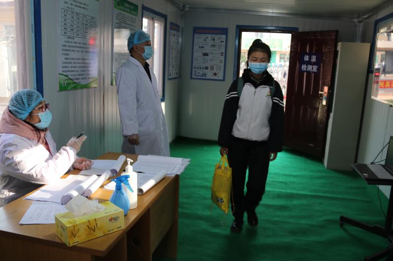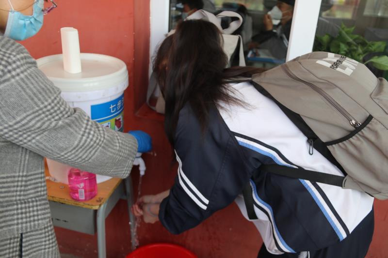 班主任老师们早就已经等候在教室里,耐心地给学生再次测量体温,指导学生洗手,上好开学第一课。