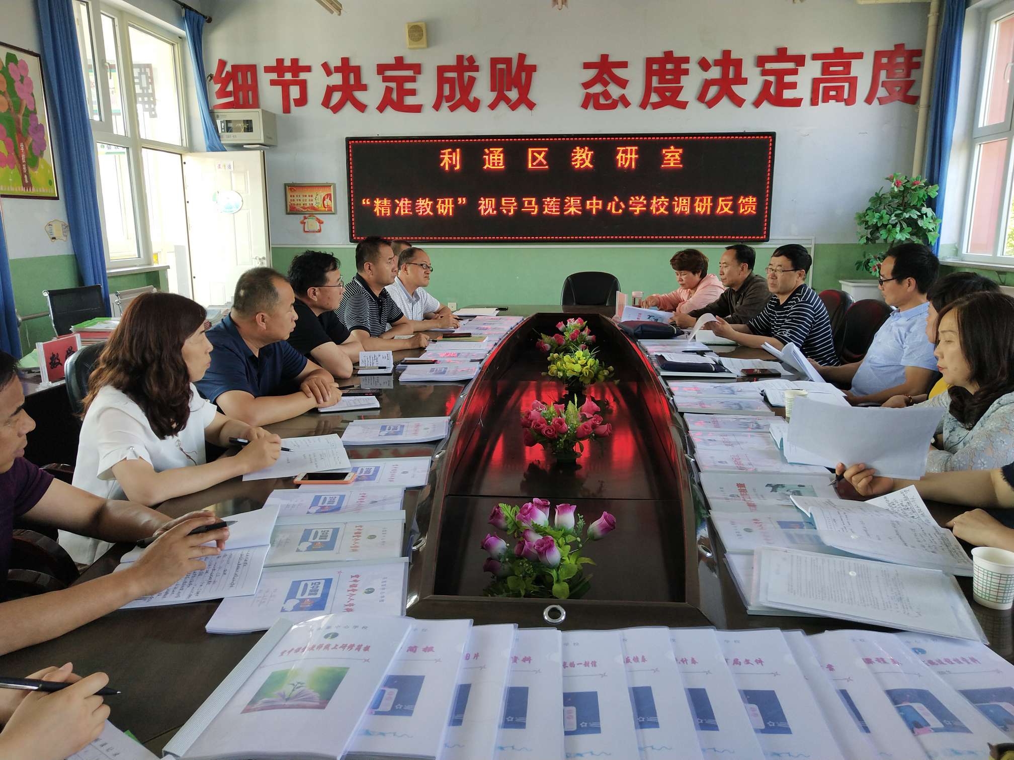 繁花六月,夏意正浓,在这艳阳丽日的美好夏天里,利通区教研师培和考试中心副主任许金忠一行八人莅临马莲渠中心学校,进行为期一天的“精准教研”教学视导工作。为了更好的衔接线上和线下的教学,提高教学质量,精准备考,本次视导主要围绕听课,常规工作检查、教学研讨和调研反馈四个部分开展。