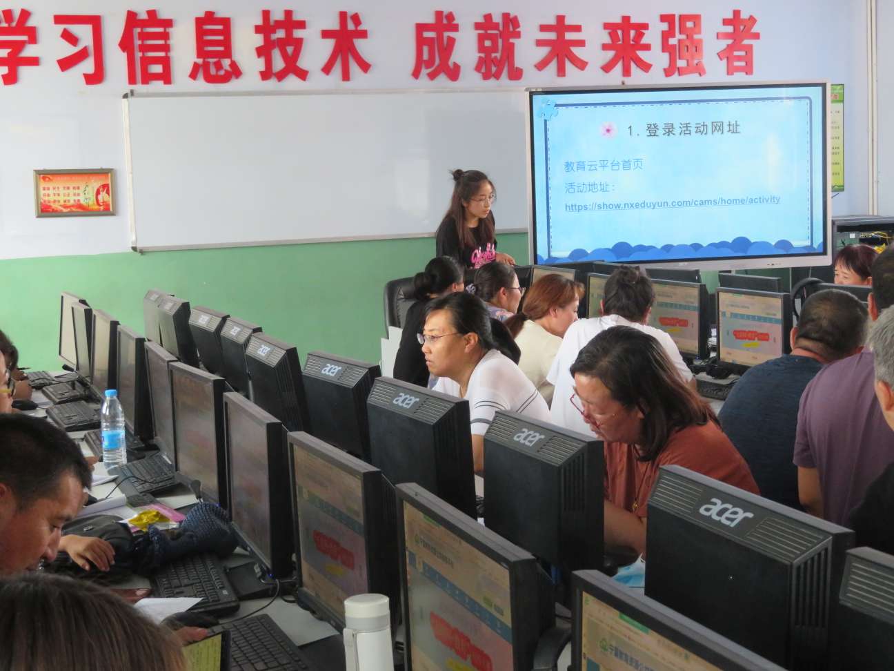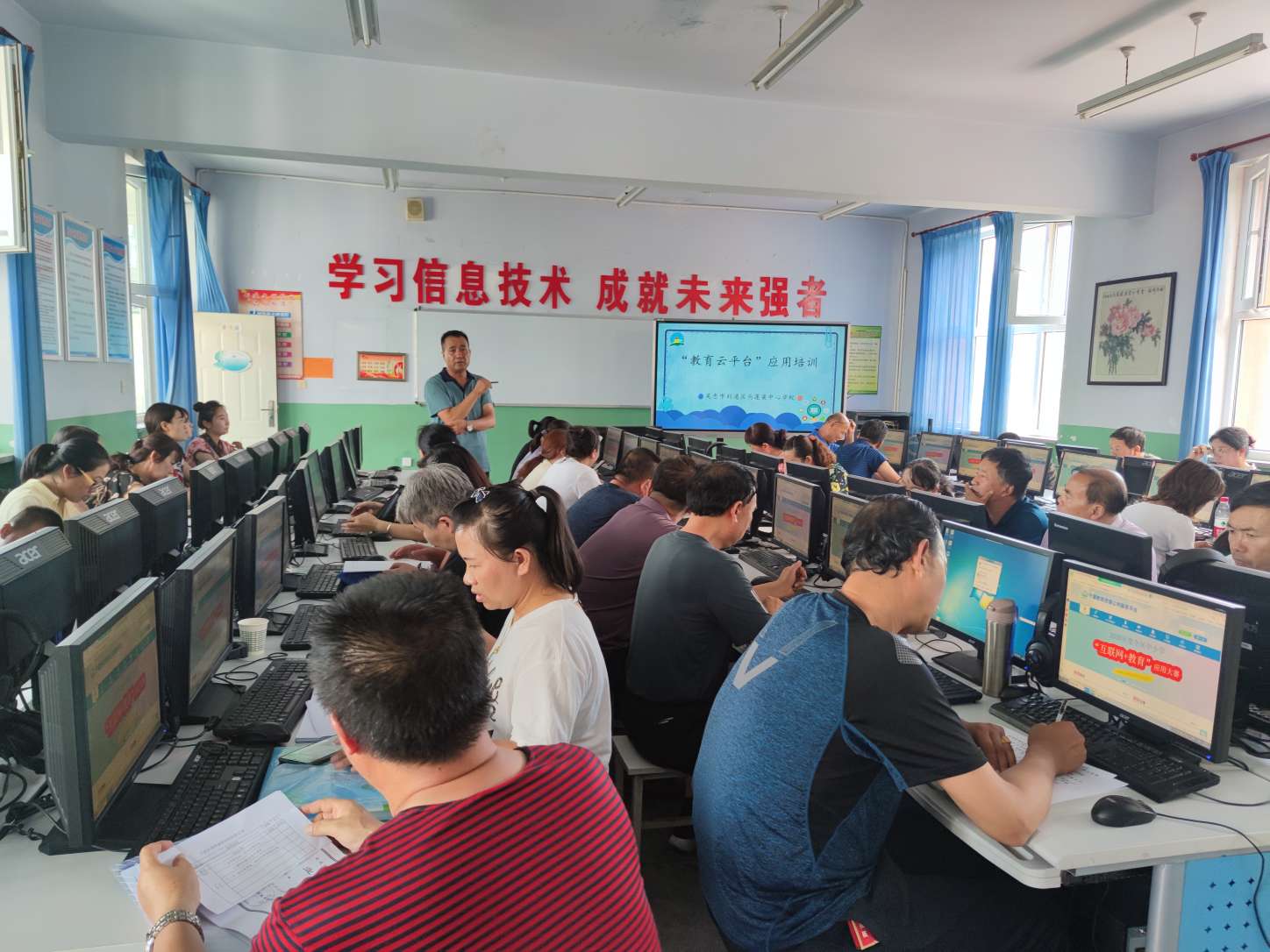 为了提升教师“教育云平台"应用能力,辅助课堂教学,推进智慧课堂教学常态化,进一步提升学校教育教学质量。7月15日下午,利通区马莲渠中心学校“教育云平台"应用培训活动如期召开,全体教师参加培训。培训内容分为三项: