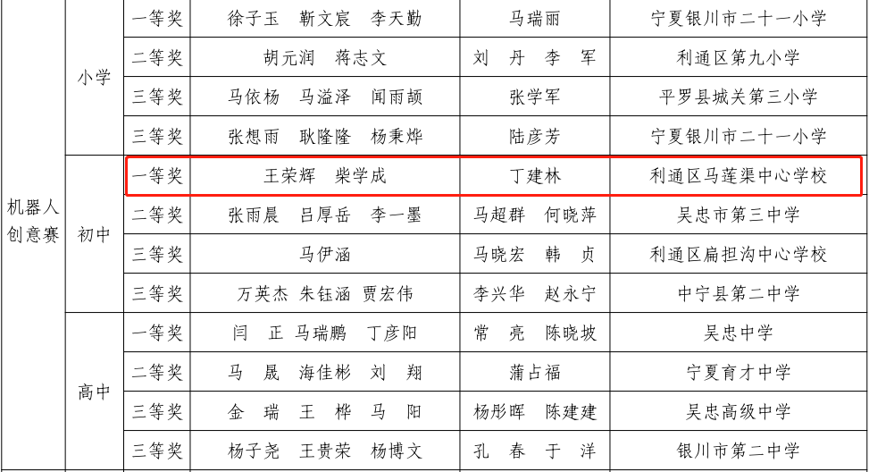 近年来,马莲渠中心学校一直以科普活动为抓手,落实青少年创新素养教育,此次机器人创意赛获得一等奖,是学校在科普教育工作用心浇灌的结果。