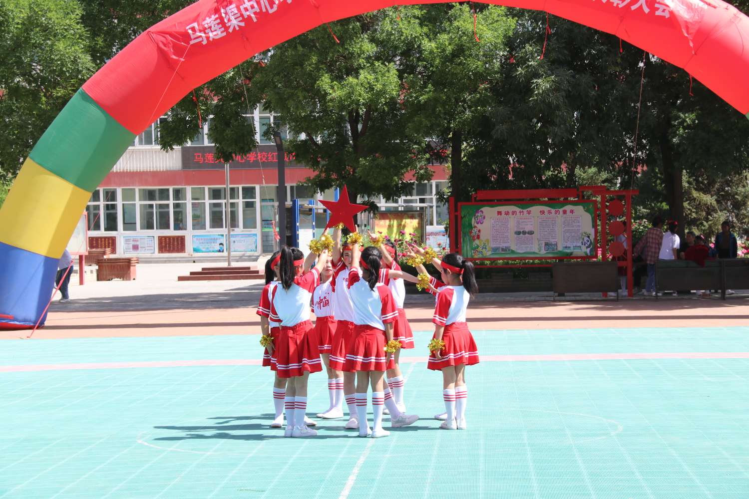今天校园里欢声笑语,到处洋溢着节日的气氛,所有学生和老师们欢聚一堂,动感的音乐、喜悦的笑脸、激动的心情,使整个校园成了歌声和欢笑的海洋。