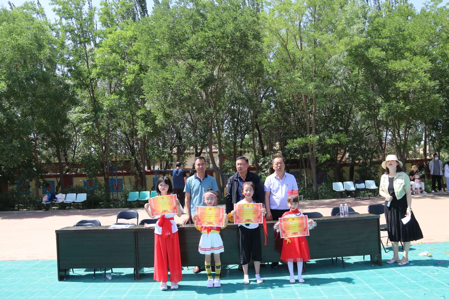 表彰大会上,副校长马跃昆做了致辞:“六一”国际儿童节,这是我们少年儿童自己的盛大节日。在这个阳光灿烂,姹紫嫣红的日子里,在这少年儿童自己的节日里,向关心少年儿童成长的老师们表示亲切的慰问,向全体同学致以节日的问候!