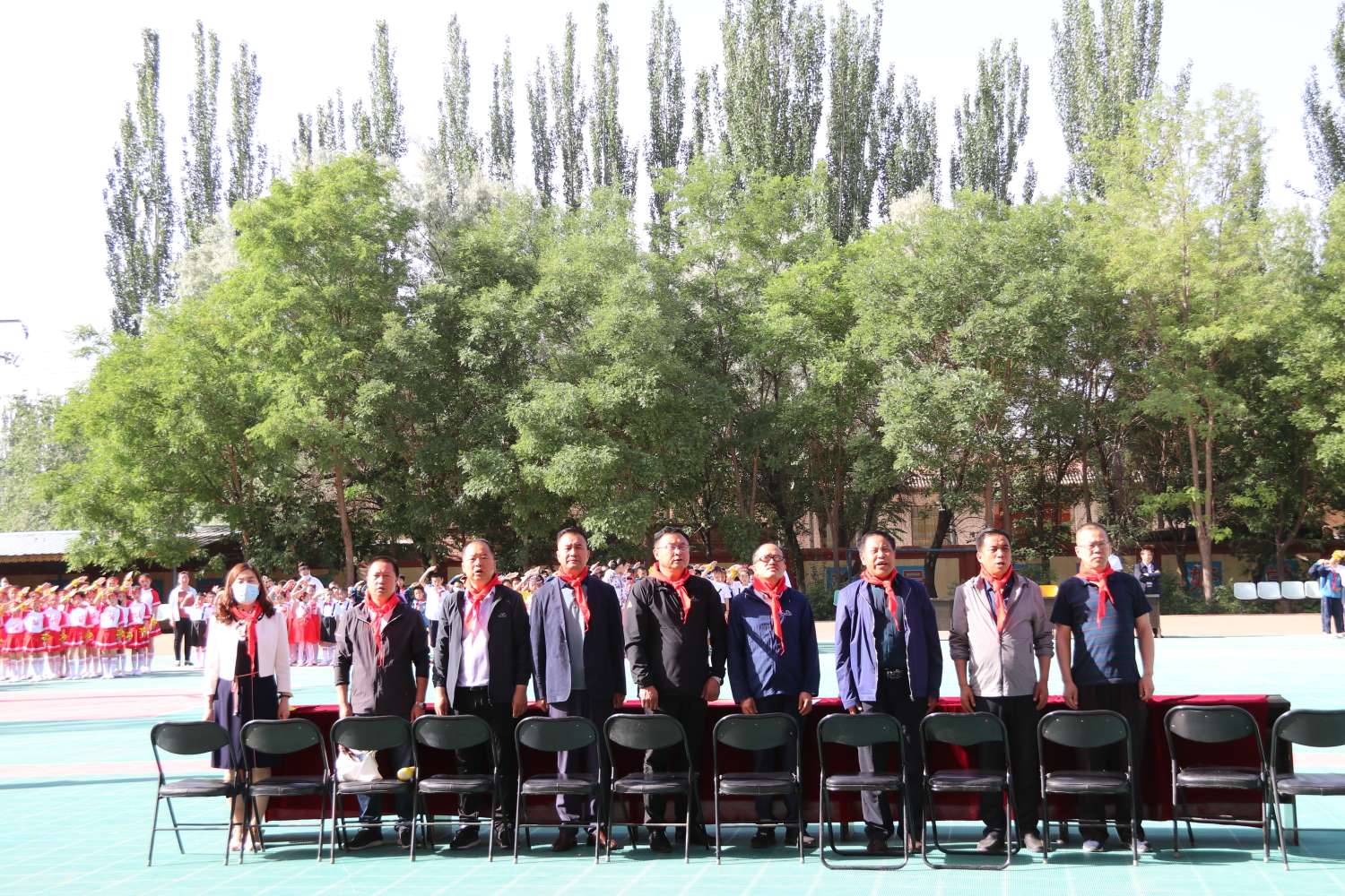 今年是中国共产党建党一百周年,操场上,全体少先队员沐浴朝阳,整齐列队,瞩目国旗,庄严敬礼,伴随着冉冉升起的国旗,共同祝愿着我们伟大的祖国明天更美好。