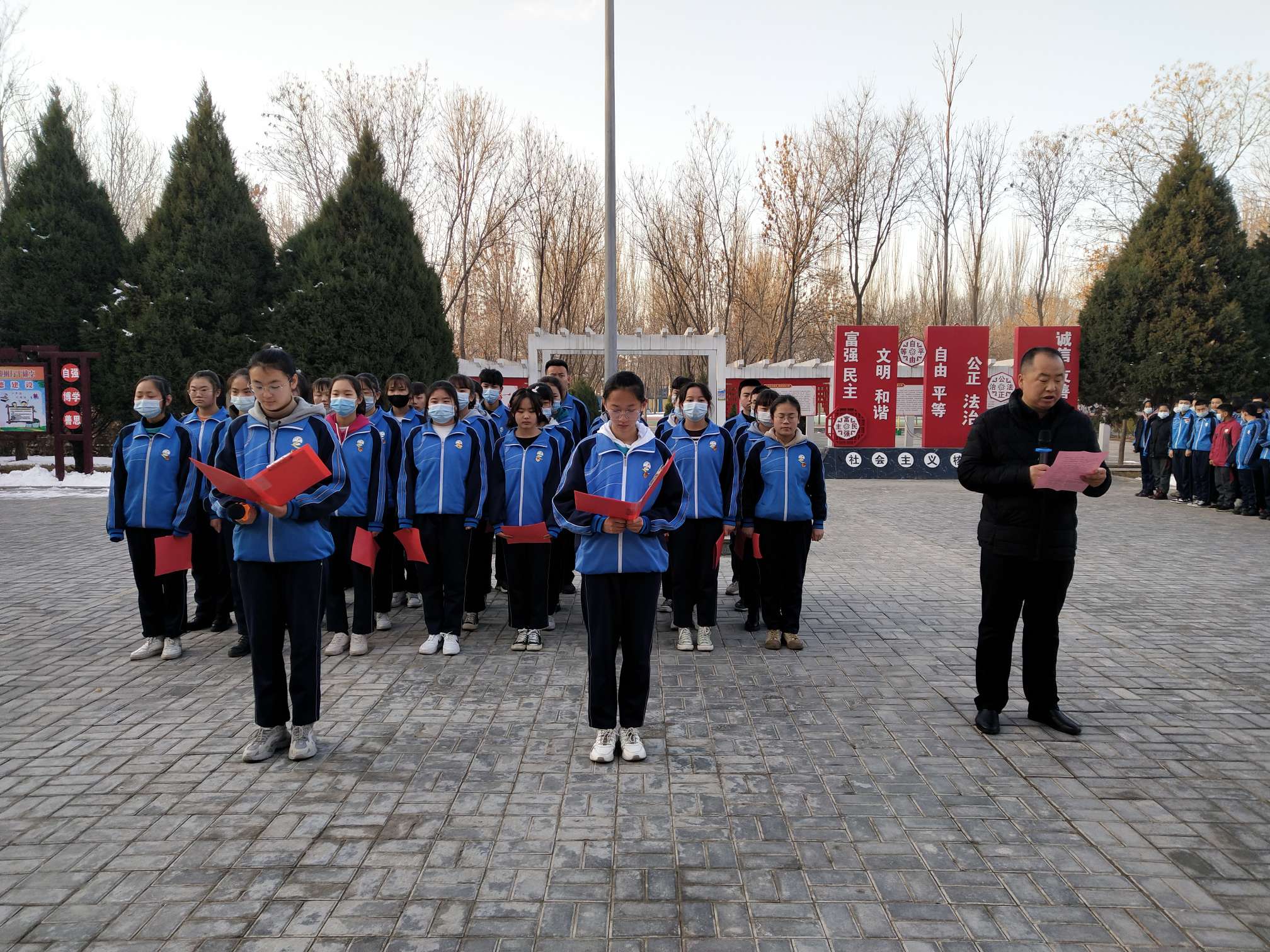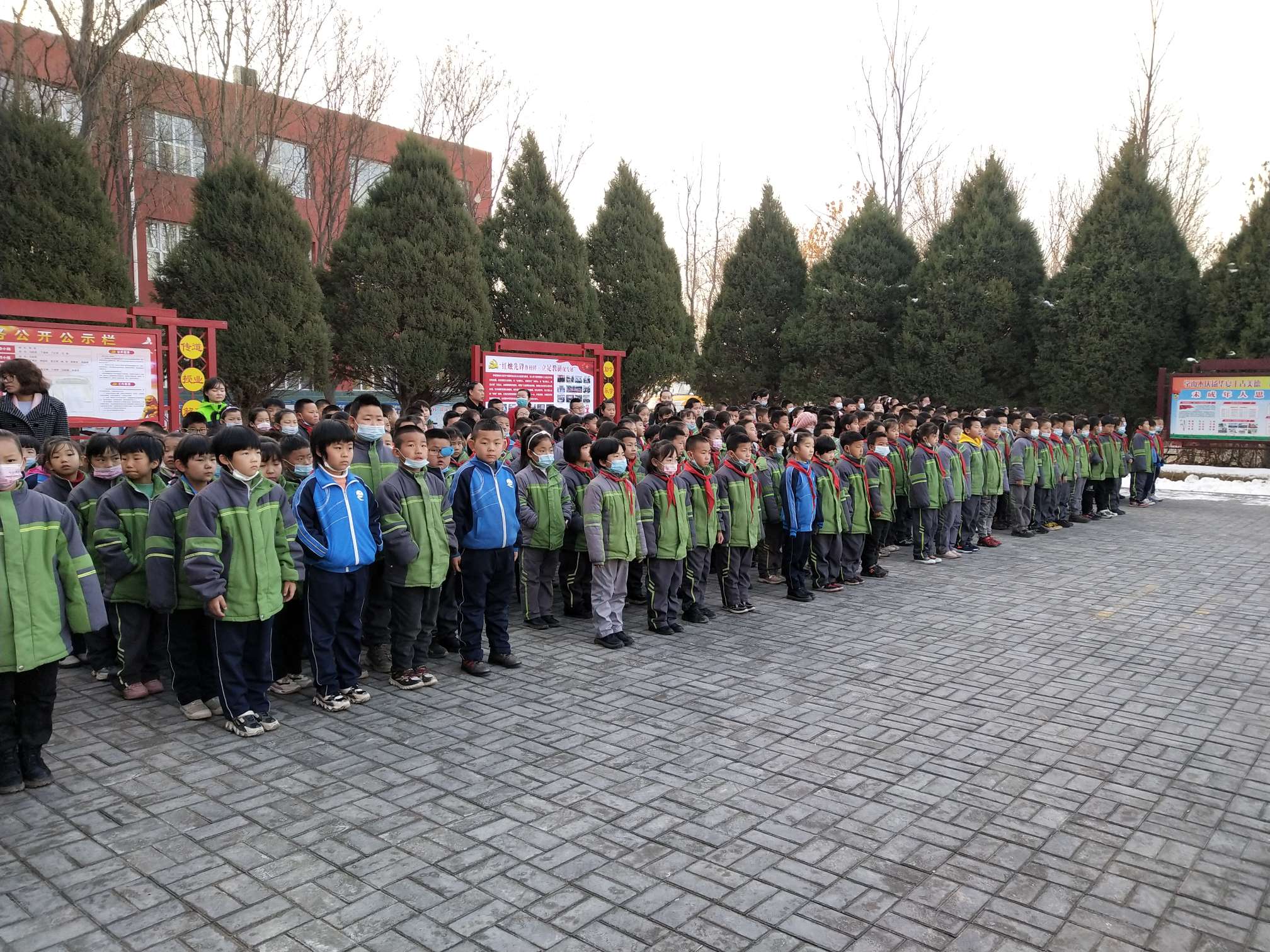 升国旗,奏唱国歌。全体师生注视着国旗,伴随着庄严的《中华人民共和国国歌》,五星红旗冉冉升起,迎风飘扬。全体少先队员们庄严地向国旗敬礼,在场的每一个人向国旗行注目礼,深怀对祖国无限的热爱和崇高的敬意。