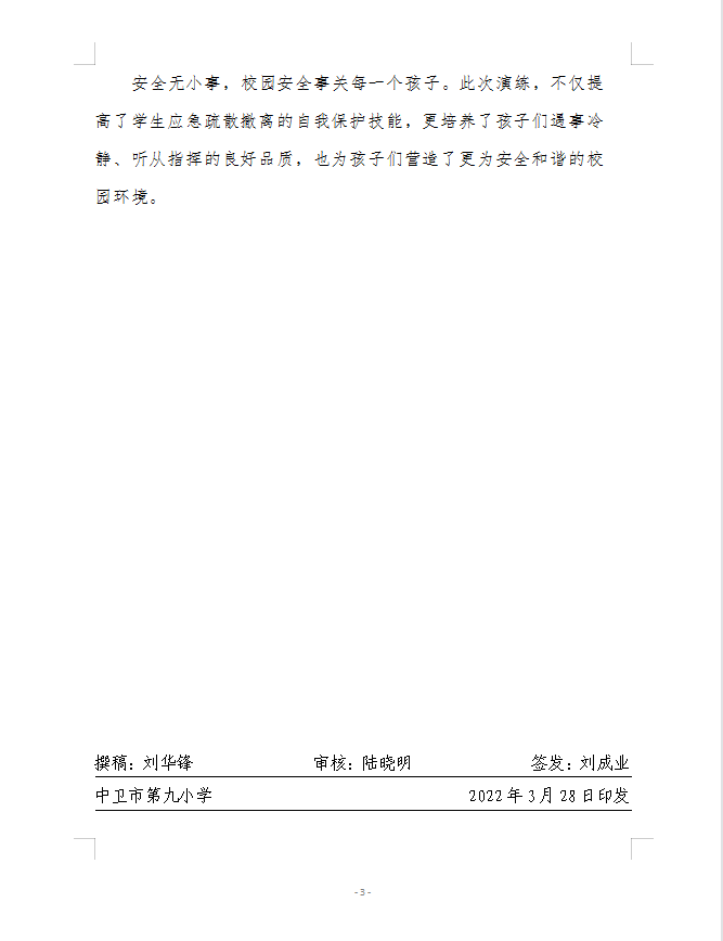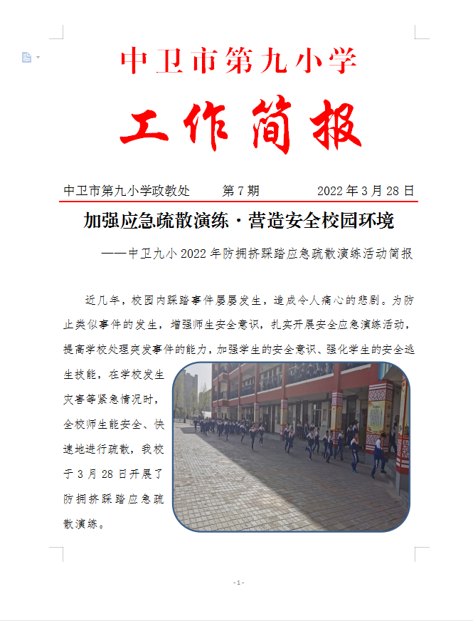 中卫九小2022年防拥挤踩踏应急疏散演练活动简报