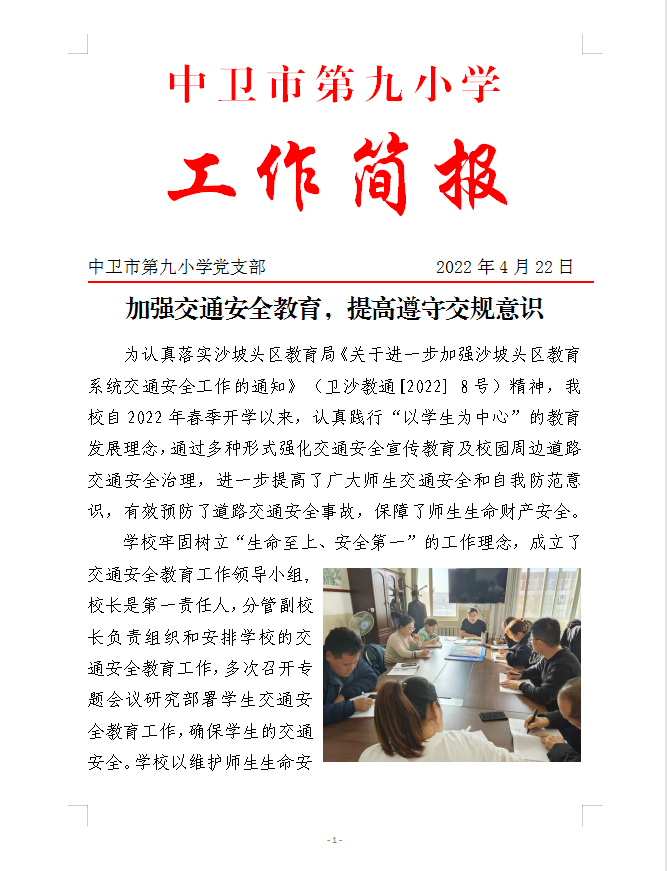 中卫九小2022年交通安全教育简报