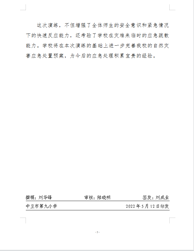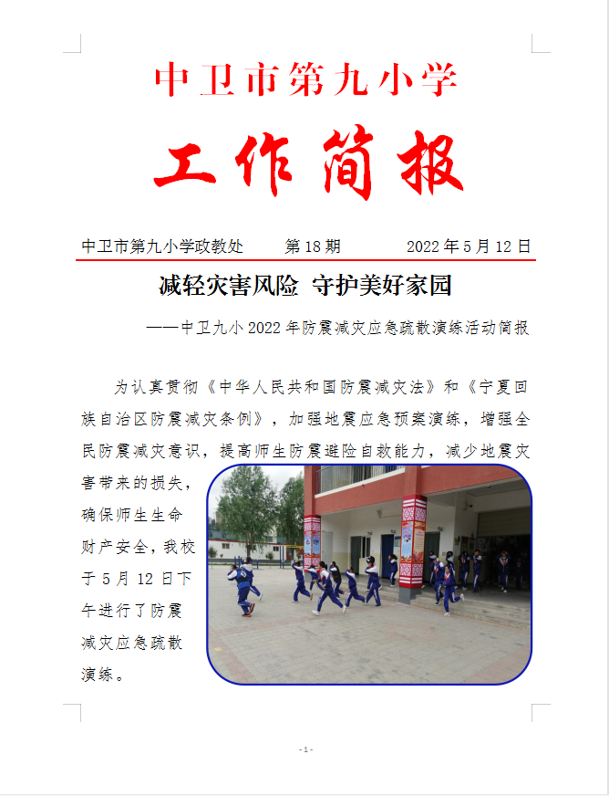 中卫九小2022年防震减灾应急疏散演练活动简报