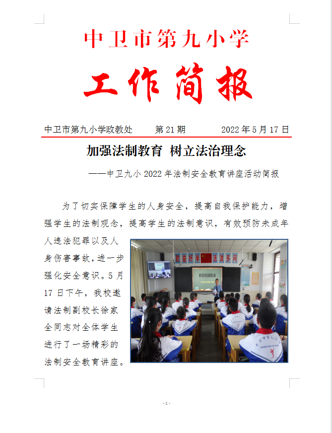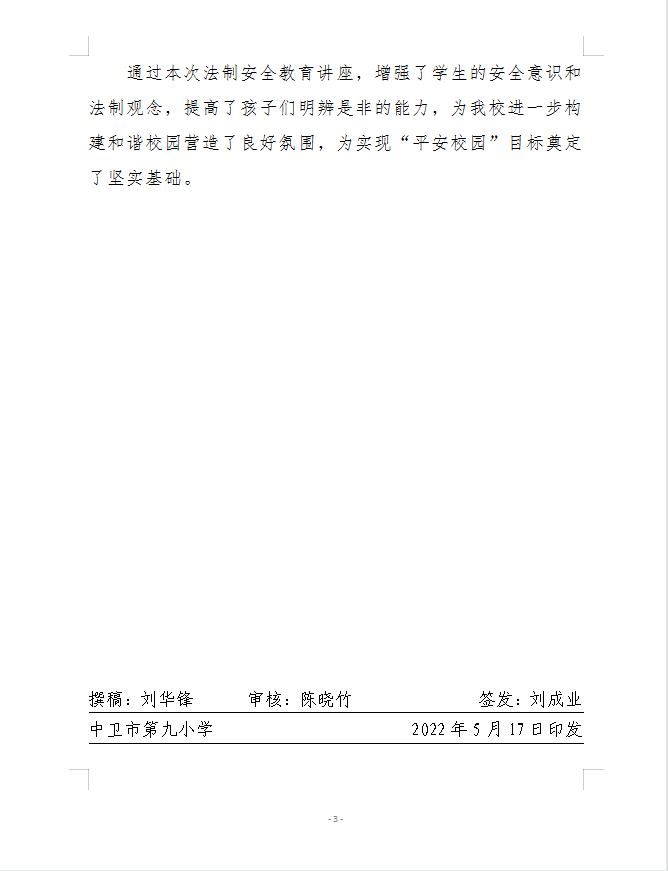 中卫九小2022年法制安全教育讲座活动简报