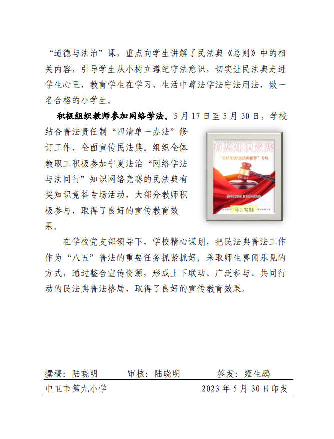中卫九小2023年法治教育工作简报7