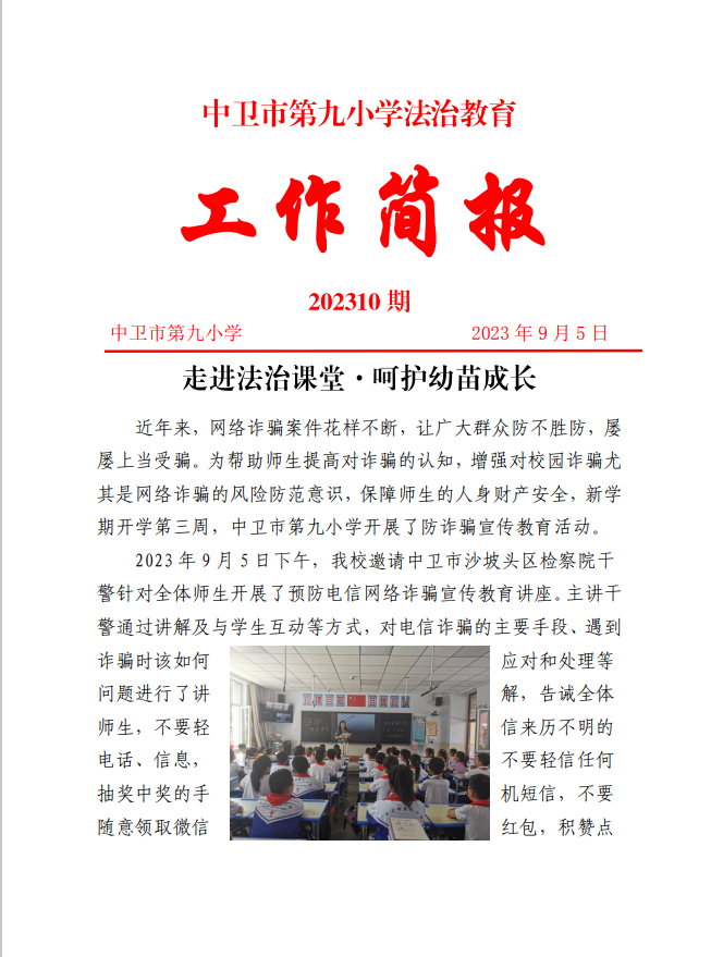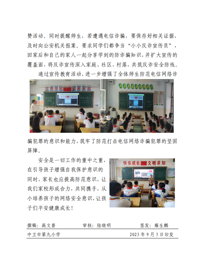 发布时间:2023-09-06 08:52 栏目:安全教育 发布单位:中卫九小 点击量:2576 【公开】