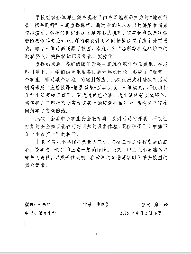 发布时间:2025-04-18 15:34 栏目:安全教育 发布单位:中卫市第九小学 点击量:995 【公开】