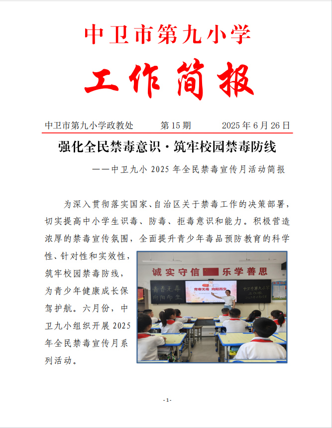 发布时间:2025-06-26 00:00 栏目:安全教育 发布单位:中卫九小 点击量:1496 【公开】