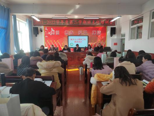 一年春作首,万事行为先。2022年2月20日上午,平罗县城关第七小学开展了2022年春季学期第一次德育工作教师培训暨班主任经验交流会。此次会议由刘瑞芳副校长主持,全体教师参加。