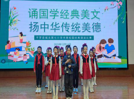 为深入贯彻落实习近平总书记关于教育重要论述,落实立德树人根本任务,弘扬中华优秀传统文化,培育学生良好的思想品德和文学艺术素养,推动我校全面实施书香校园、文明校园建设工作,培养学生热爱祖国传统文化的热情,平罗县城关第七小学于12月13日——15日下午举行了“诵国学经典美文 扬中华传统美德”经典诵读比赛。