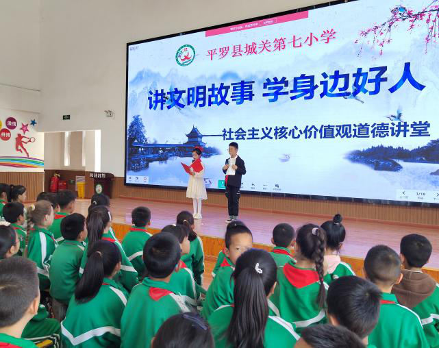走进道德讲堂,沐浴道德洗礼,品悟道德力量。为深化社会主义核心价值观对学生行为习惯的影响,在我校营造“讲道德,树新风,做好人”的良好氛围。3月29日,平罗县城关第七小学精心策划并开展了“社会主义核心价值观记心中”为主题的道德讲堂。