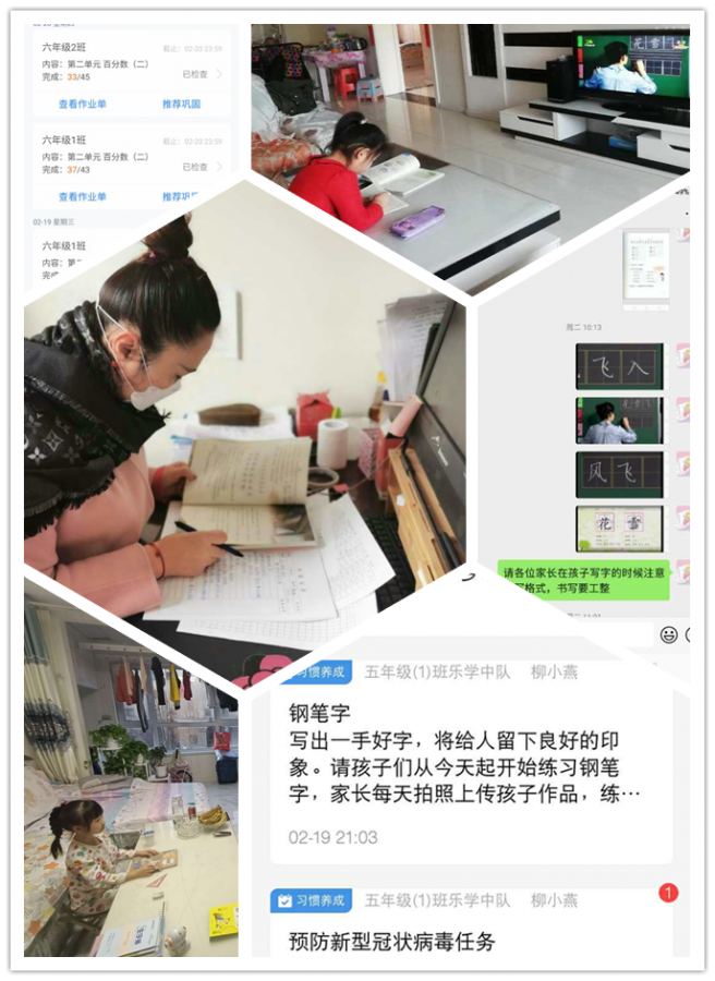 线上耐心指导,解决疑惑。虽然老师们都在各自的家中无法进行面对面的讨论和沟通,但是现代技术帮助我们实现了不可能的事情。有几位教师针对孩子们和家长们提出的疑惑,录制微课,解决学生的困惑。我们的班主任何老师手机里这样写道。“温馨提示:疫情当前望各位家长理解、体谅班主任不厌其烦的艾特和电话联系,我们的目标是:一个都不能少!”多么有温度的教育。