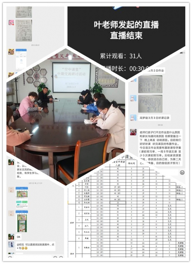 本次交流研讨活动由贺兰县第五小学崔涛主持,崔校长就前期“空中课堂”贯彻落实过程中存在的问题广泛听取了教研组长汇报,并就存在的问题对广大教师提出了细致的要求并根据学校实际情况制定了校级考核方案。学校对教师及学生就课前、课中、课后做出了具体的要求,要求全体任课教师课前做好备课,课中全程参与课堂直播,课后及时做好在线答疑及学生作业的跟踪落实。要求学生课前做好预习,按时观看课堂直播,家长及时指导学生作业并引导学生建立良好的生活学习习惯。音体美教师结合本学科特色,做好学生美育德育教育。有要求、有落实、有考核,贺兰县第五小学制定了相应的日汇报、周总结考核方案,就学生“空中课堂”参与率、教学设计、听课记录、课后微视答疑,学生作业提交率五大块进行合理的考核。考核不是目的,是为了更好的督促教师、学生充分做好“空中课堂”各项工作,力求有实效。