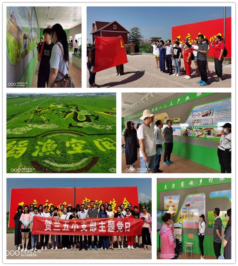 2020年7月14日,贺兰五小全体党员及教师前往贺兰县稻渔空间乡村生态观光园参观学习。各种品种的水稻拼接种植出惟妙惟肖的稻田画、用稻草绳编制的各种活泼可爱的卡通、别具风格的观光栈桥、休闲垂钓的池塘,让我们感受到绿色文明的重要性。