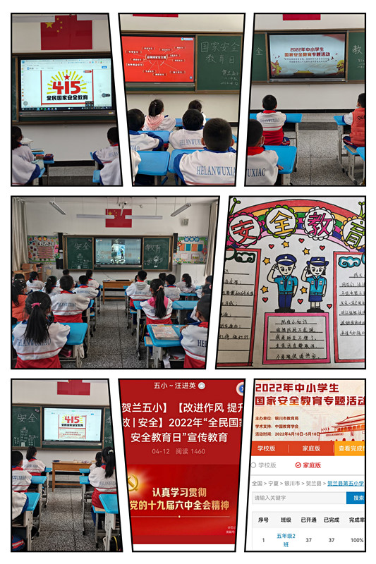 首先通过制作美篇进行国家安全知识宣传,让全体师生和家长了解什么是国家安全、国家安全相关法律法规、以及公民在维护国家安全中享有的权利和义务等;其次是利用电子屏,红领巾广播站进行宣传。各班召开“全民安全教育日”主题班会。通过开展主题班会,对当前的安全热点问题:上下学交通安全、预防溺水、食品卫生、消防安全、应对自然灾害、防范校园伤害等进行专题教育,每个班级办一期安全知识手抄小报,提高学生对安全的认识水平及安全防范意识。同时要求全体学生完成安全教育平台“2022年全国中小学生国家安全教育专题活动”,使每位同学做到知法、用法、守法。全体老师关注了“国安宁夏”微信公众号参与安全知识有奖问答活动。