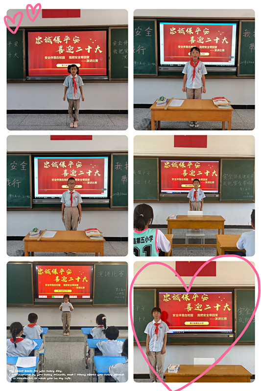 本次演讲活动,学校提前制定了演讲比赛实施方案,安排了6个班级共12名学生参加了本次演讲。大家姿态自然,情绪饱满,紧紧围绕交通安全、防溺水安全、食品安全、心理健康以及禁毒等各个方面展开了精彩的演讲。充分展示了贺兰县第五小学学生良好的精神风貌。他们以自己的实际行动,从我做起,从细节做起,珍爱生命,积极传播安全理念,宣传安全知识,为所有师生及家长树立良好的榜样。