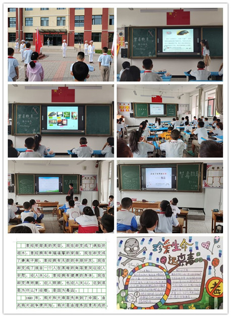 学校全面安排禁毒宣传月活动,在6月13日的周一升旗仪式上,值周教师国旗下讲话以“珍爱生命 远离毒品”为主题。6月21日五、六年级利用主题班队会对学生进行禁毒宣传,同时充分发挥各宣传阵地的教育作用,利用黑板报、宣传栏、手抄小报、校园广播站等对学生进行禁毒教育。同时五、六年级学生完成了禁毒征文,将禁毒教育与法治教育,行为规范教育等结合起来,有效提高了学生对毒品危害性的认识和自己抵制毒品的能力。