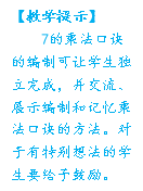 师:刚才经过我们的共同努力。大家编出了7的乘法口诀。下面请大家拍手齐读口诀。读完后自己试着记一记这些口诀。