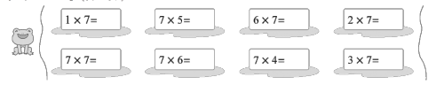 【设计意图】通过多种形式的练习,帮助学生进一步理解、记忆7的乘法口诀,在练习中,感受学习乘法口诀的价值及它在生活中的应用。