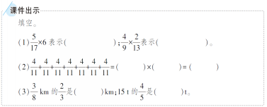 1.理解分数乘、除法的意义,掌握分数乘、除法的计算方法,比较熟练地计算简单的分数乘、除法,会进行简单的分数四则混合运算。