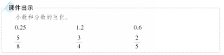 师:怎样把小数化成分数?分数化成小数呢? (2)分数化成小数,直接用分子除以分母。
