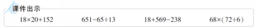 一、激活经验,导入新课 1.激活经验。 师:说出下面各题的运算顺序。(课件出示习题)