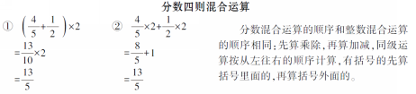 教学重点 | 掌握分数混合运算的顺序与整数混合运算的顺序相同。 |