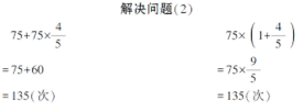③在交流中使学生明确画线段图的方法。 题目中有“青少年每分钟心跳的次数”和“婴儿每分钟心跳的次数”两种量,一般要用两条线段来表示;画线段图时,把单位“1”的量画在上面,比较量画在下面;把单位“1”的量平均分成5份,婴儿心跳的次数比青少年多的部分相当于5份中的4份。 (2)交流解题思路。 学生结合线段图,在小组内交流解题思路。 (3)独立解答。教师巡视,辅导学习有困难的学生。 (4)指名板演,全班交流。 组织交流汇报,汇报时让学生说说是根据哪种解题思路进行解答的。 3.回顾与反思。 师:通过分析与计算,我们得到结果是135次,这个结果正确吗? (1)学生自主检验。 (2)全班交流汇报。 (3)教师提醒:不要忘了写单位和答语。 4.拓展练习。 课件出示教科书P14“做一做”。 5.比较归纳。 师:比较前面解答的两题,它们有什么异同? 师小结:求比一个数多(少)几分之几的数是多少的两种解法可以归纳为:比一个数多(少)几分之几的数=单位“1”的量±单位“1”的量×几分之几;比一个数多(少)几分之几的数=单位“1”的量×(1±几分之几)。 三、巩固练习,综合应用 1.课件展示教科书P15“练习三”第4题。 2.课件展示教科书P15“练习三”第5题。 3.课件展示教科书P15“练习三”第6题。 4.课件展示教科书P15“练习三”第7题。 四、课堂小结 师:今天我们学习的内容有什么特征?我们是怎样解决这一类问题的?你有什么想提醒同学们的? |