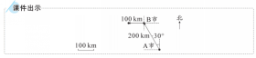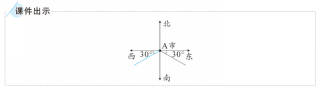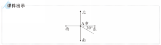 师:有人说台风中心位于A市南偏东60°方向,距离A市600km,对吗?(出示课件)