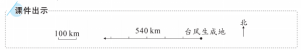 师:台风生成后以谁为观测点?大家是怎么确定方向的?距离又是多少? ②师:台风改变了方向之后,又是怎样移动的? 随着学生描述,课件演示台风移动的第二段路线。