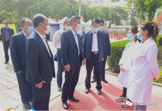 2020年5月15日,吴忠市市委副书记、吴忠市人民政府市长喜清江一行在吴忠市教育工委书记、教育局局长王守军、副局长柳佳伟的陪同下到吴忠高级中学视察疫情防控及高中学生返校复课工作。