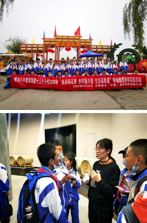 为了解宁夏建设黄河流域生态保护和高质量发展先行区,感受贺兰山东麓葡萄酒原产地域特色,体验稻田立体综合养殖和农耕文化,开展劳动教育,进一步了解国情、区情、市情,促进书本知识和生活经验的深度融合。9月28日,银川市第六中学教育集团十三中分校组织七年级学生开展“贺兰山下果园成”、“鱼游稻花香 乡村振兴强 生态高质量”劳动教育研学实践活动。