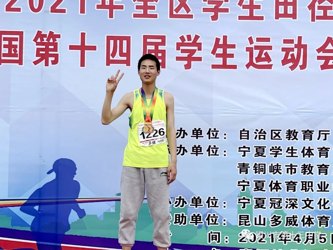 在教练员李佳良、张明轩长期训练和科学指导下,银川六中教育集团十三中分校九年级(3)班同学王艺达以坚忍不拔的毅力,敢于拼搏、挑战自我,经过激烈角逐,获得初中组男子跳高、男子110米栏两枚银牌。金凤区教育局代表队夺得大赛团体总分第六名。