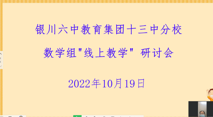突如其来的防疫命令,让我们用网络搭起了课堂,开始了一次跨时空的线上教学。疫情影响下,为保证线上教学与线下课堂同质同效,银川六中教育集团十三中分校数学教研组开展以“精心备好每一课,保证线上教学实效”为主题的线上教研活动,真正做到停课不停研。