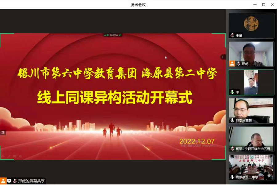 为落实银川市教育局与中卫市教育局教育战略合作框架协议,根据银川市第六中学教育集团与海原县第二中学签订的合作框架协议内容,在银川市教科所、金凤区教研室和海原县教育局师资培训中心的指导下。12月7日—12月9日,由银川市教科所主办、银川市第六中学和海原县第二中学承办的“同课异构”线上教学研讨活动在宁教云平台、腾讯会议举行,本次教研活动以推动校际交流、促进教学研究、推进模式创新为目的,采取线上教学、线上听课、线上评课的方式,两地三校教师齐聚云端,以饱满的热情参与到本次活动。