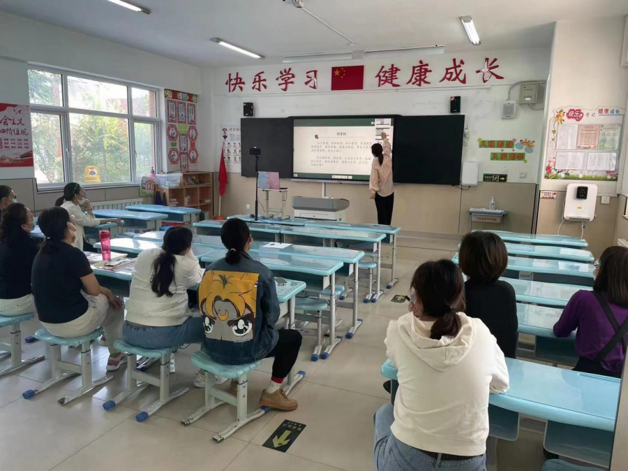 与此同时,参与录课的老师们争分夺秒,开始扎实备课,认真研讨。选好课题,研读教材,琢磨文本,开始有了设计的初稿和第一稿的课件。单丝不成线,独木难成林。在李丽芳校长的带领下,数学组还成立了备课团队,每一次的团队磨课,老师们都积极交流,逐字稿和课件改了一遍又一遍。虽然辛苦,但老师们毫无怨言,凝心聚力,给录课老师各种支持与帮助,大家只有一个目的——共同研制精品课堂。