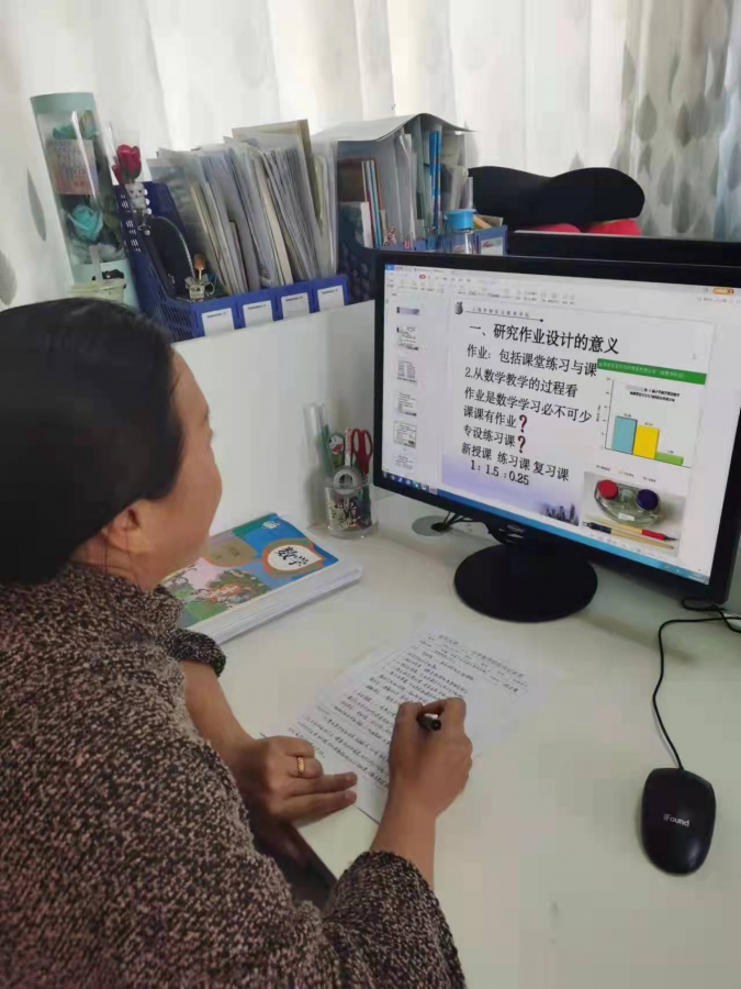此次活动具有较强的针对性和指导性,为优化作业设计做了很好的解读和范例,为全体小学数学教师带来了丰盛的大餐。老师们在培训过程中认真的做了笔记,不断反思。相信通过本次线上教研活动的开展,教师们会不断更新自己的理念来促进每一位学生健康、快乐地成长。