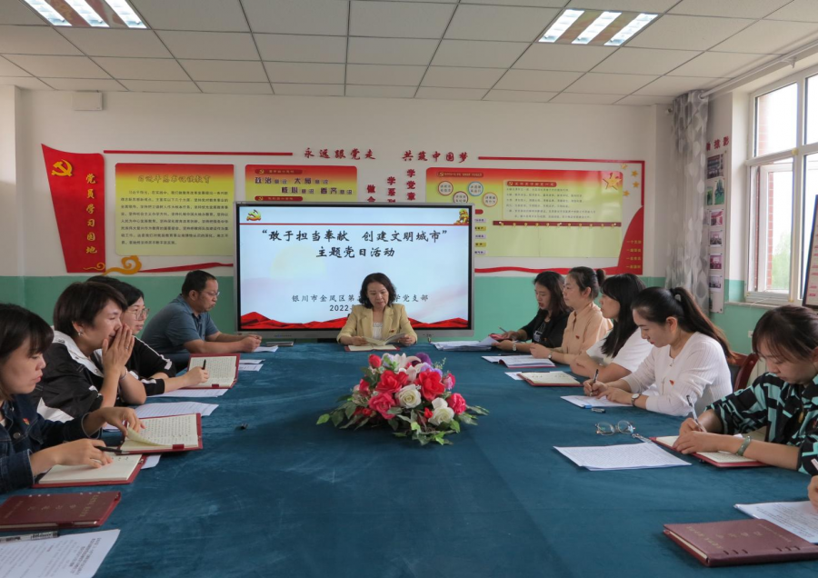 正值创建全国文明城市关键期,党支部号召全体党员深入学习习近平总书记视察宁夏重要讲话精神、自治区第十三次党代会精神、赵旭辉同志在2022年银川市创建全国文明城市工作推进会上的讲话精神、金凤区2022年创建全国文明城市工作推进会精神等重要内容。