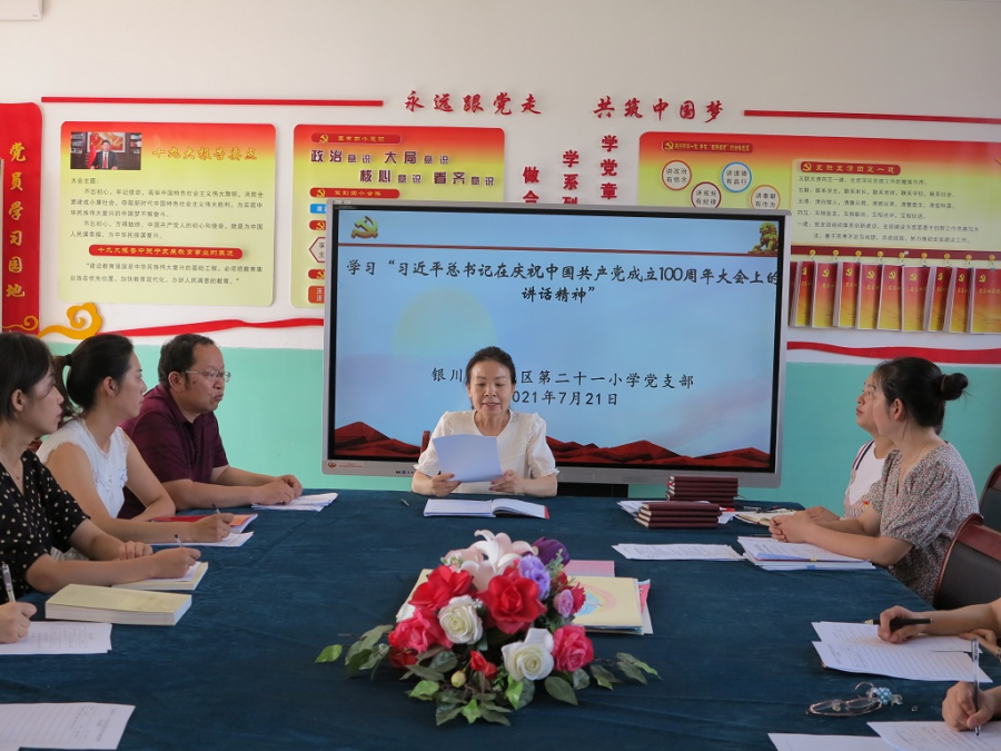 会上由党支部书记李丽芳同志带领全体党员深入学习习近平总书记在庆祝中国共产党成立100周年大会上的讲话精神。并围绕“进一步总结历史经验,感悟党的百年历史”这一主题开展了专题研讨。